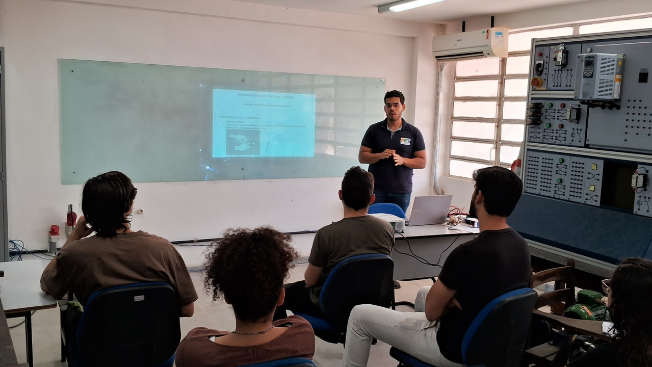 A aula contou com a exposição teórica de Instalações Elétricas, apresentando conceitos necessários para o planejamento de uma planta elétrica básica e conhecimentos acerca de proteção dos sistemas, mapeamento e dimensionamento de circuitos.