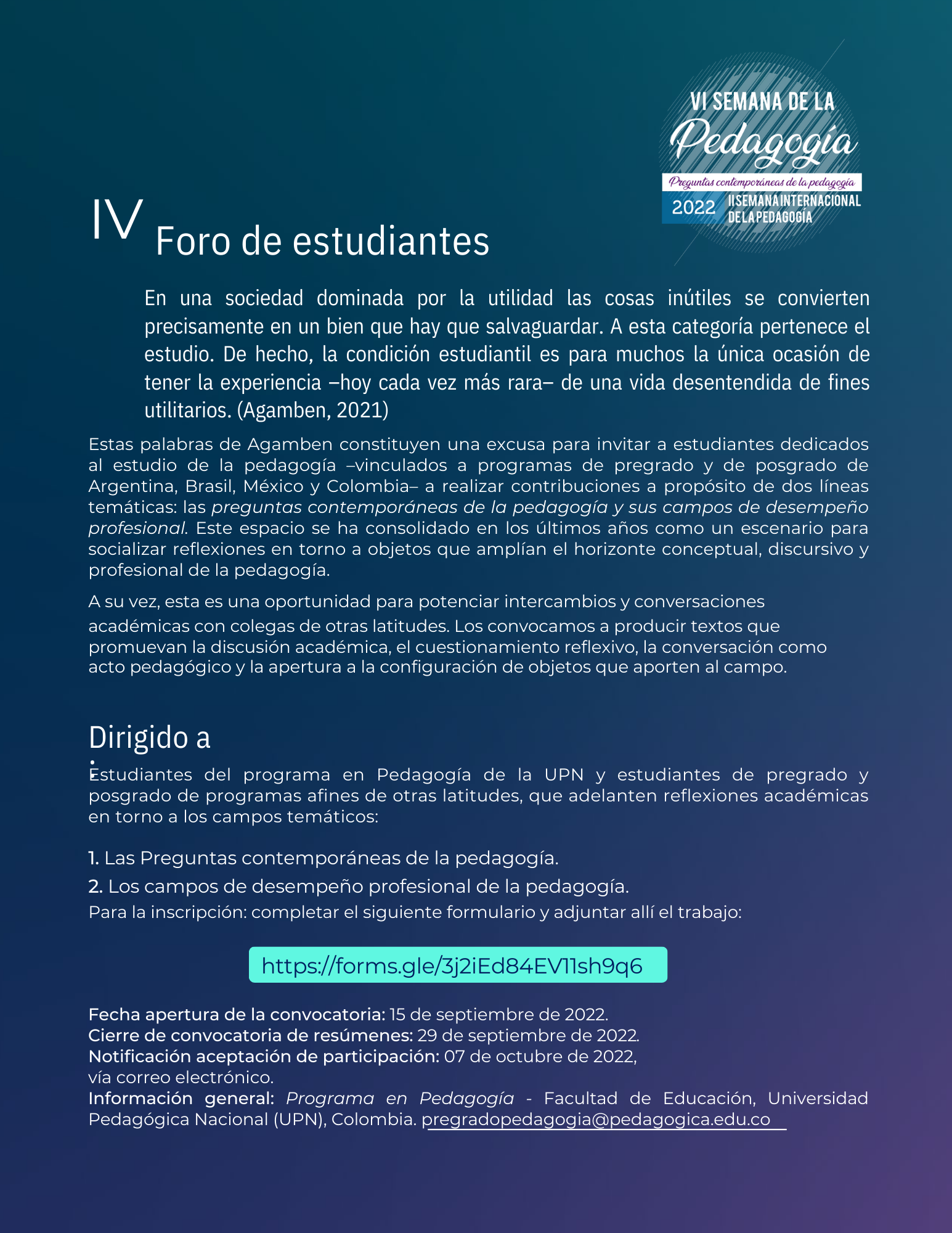 VI SEMANA DE LA PEDAGOGÍA