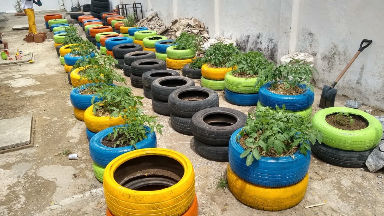 O local para cultivo foi construído com materiais recicláveis, como pneus e garrafas pets, considerando os conceitos de sustentabilidade e reutilização. “Fizermos parceria com borracharias, a Associação de Catadores da Cidade de Solânea (Catasol) e familiares dos presidiários para levantar os insumos”, informou o discente.