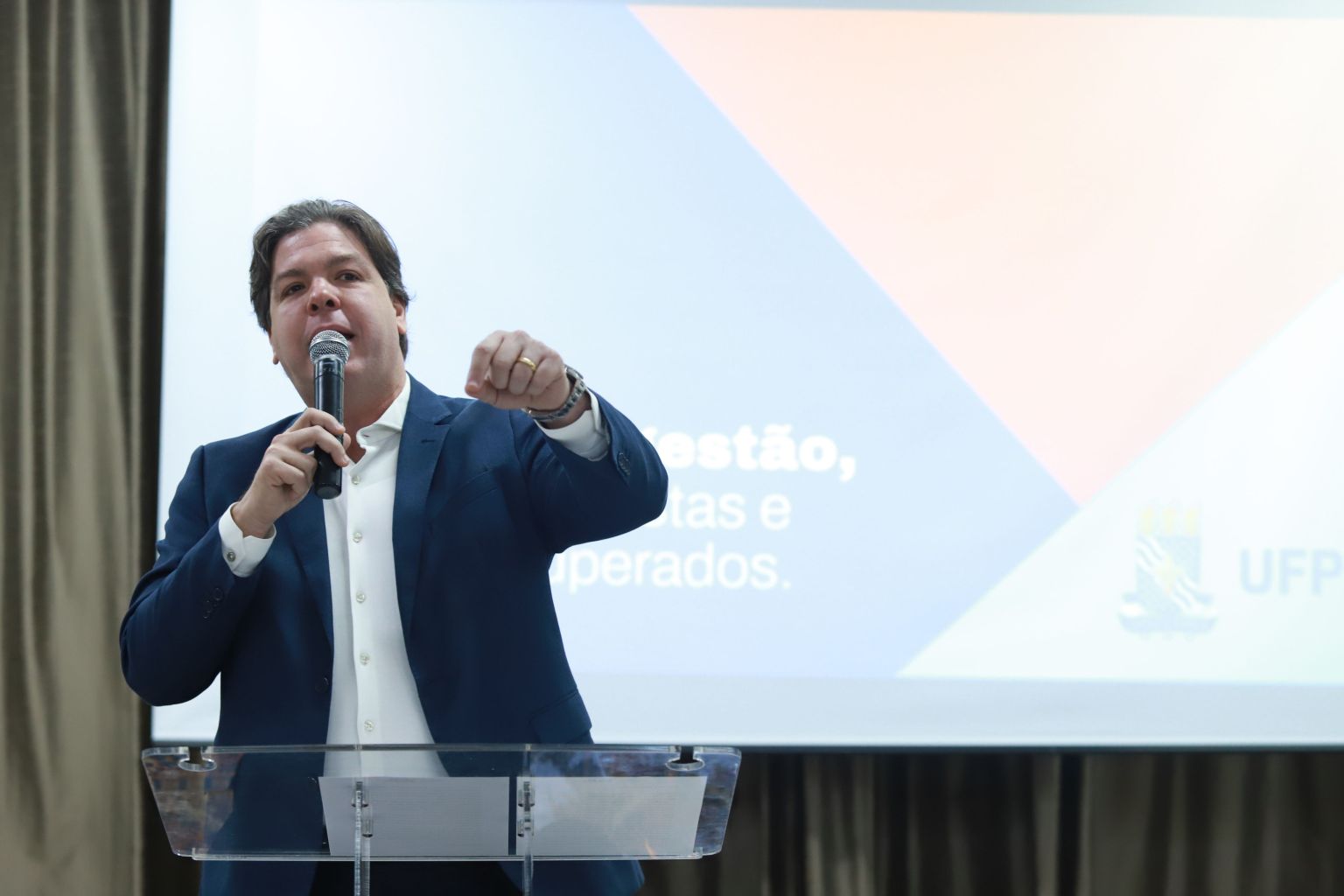 A celebração, que foi aberta pela apresentação do Sexteto Sanhauá, grupo vinculado ao Centro de Comunicação, Turismo e Artes (CCTA), contou com a participação do Ministro das Comunicações, Frederico de Siqueira Filho. Ele elogiou a proatividade das gestoras em buscar com frequência recursos e parcerias em Brasília e discutiu possíveis cooperações entre o ministério e a UFPB, como iniciativas para incrementar a qualidade do wi-fi nos campi e também a participação da universidade no programa Computadores para Inclusão, ação do ministério que restaura computadores que iriam para o descarte e depois os doa para políticas de inclusão digital. “Há um desejo do governo federal de aumentar a autonomia universitária e aumentar o processo de inclusão”, destacou o ministro.